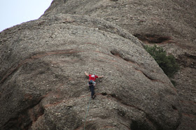 El primer contacto la semana pasada fue bueno en la via Cherokee abierta por Joan Vidal en solitario el 2 de Noviembre del 2004 y situada en la Agulla dels Tres o Agulla CNT, un primer largo sencillo que te situa debajo de un desplome muy atractivo, sobre todo visualmente, el equipamiento es generoso y bueno, parabolts de 10 mm en el primer largo y en el segundo de 8 mm. Un intento a vista en el segundo largo me frustro y acabe sacando todos los movimientos pero no el rothpunkt, no por falta de ganas, pero lo que era un dia soleado paso a ser un dia frio y gelido y me quede tieso en la primera reunión, pero aún y así pude sacar los movimientos, romper alguna presa, etc, y ver que es posible escalarla en libre me hace volver de nuevo este sabado a por el ansiado rothpunkt.